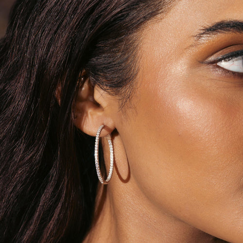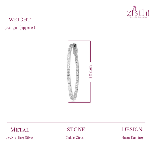 Silver Zircon Sparkling Inout Hoop Earring 30MM