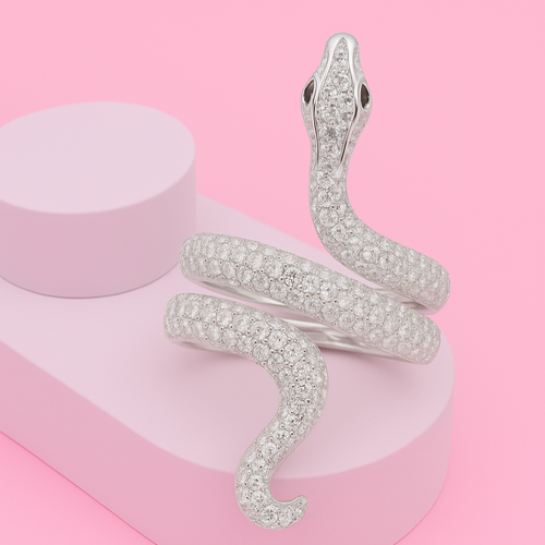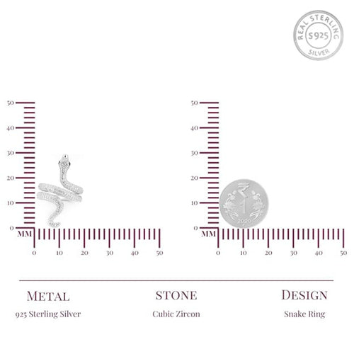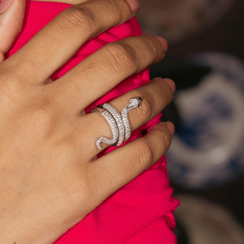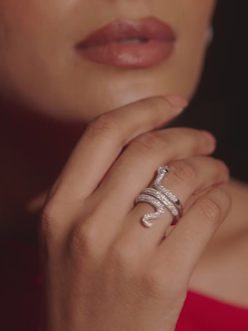 This unique sterling silver ring wraps elegantly around your finger, inspired by the mystique of the serpent. Adorned with sparkling zircons, it's a bold choice for any occasion.