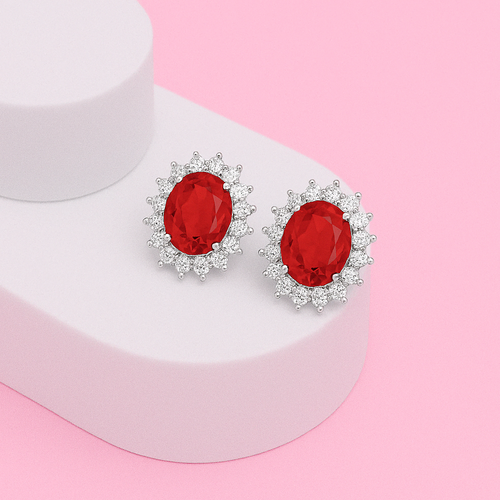 These stunning  Red Halo Silver Stud Earrings are crafted from high-quality 925 Sterling Silver and showcase a vibrant red centre stone surrounded by a sparkling halo of zircons. Perfect for festive occasions or adding a bold touch to your outfit, these earrings exude elegance and charm.