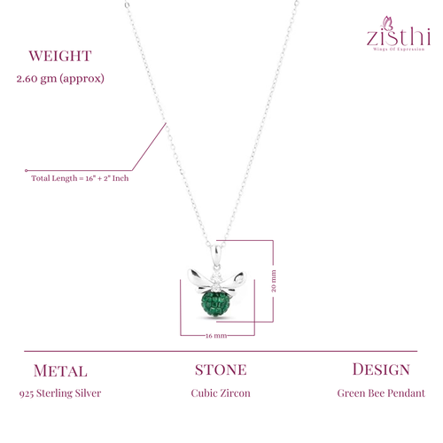 This charming necklace is made from 925 Sterling Silver and features a cute bee-inspired pendant with a beautiful green stone at the centre. The simple yet elegant design makes it perfect for daily wear or special occasions.