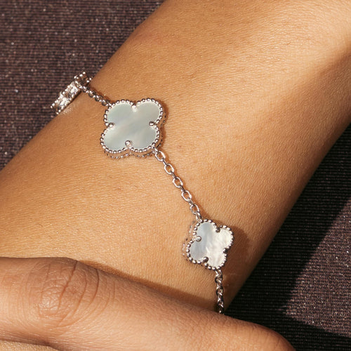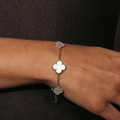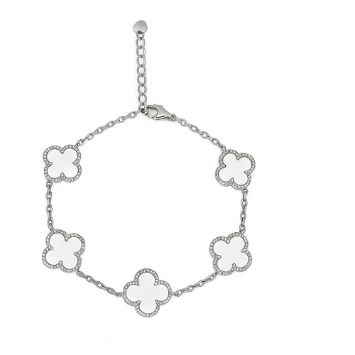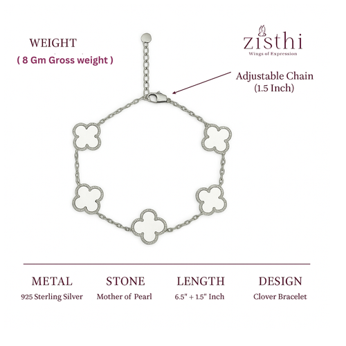 Inlay Clover Silver Linking Bracelet 6.5"+ 1.5" inch