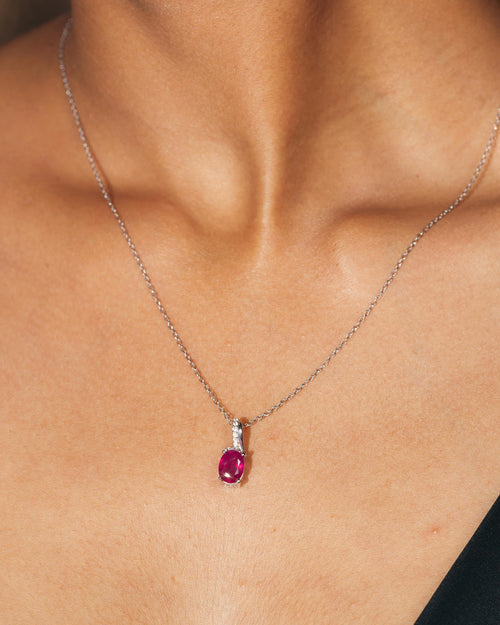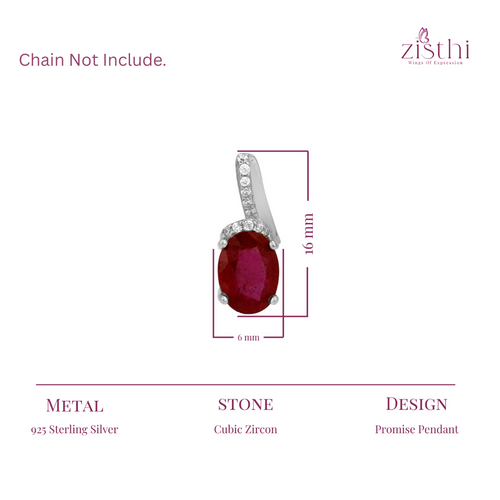 The Alluring Ruby Promise Pendant is a captivating piece that symbolises love and commitment. Crafted from high-quality 925 sterling silver, this pendant features a stunning ruby at its centre, surrounded by delicate zircon accents that enhance its brilliance and beauty.