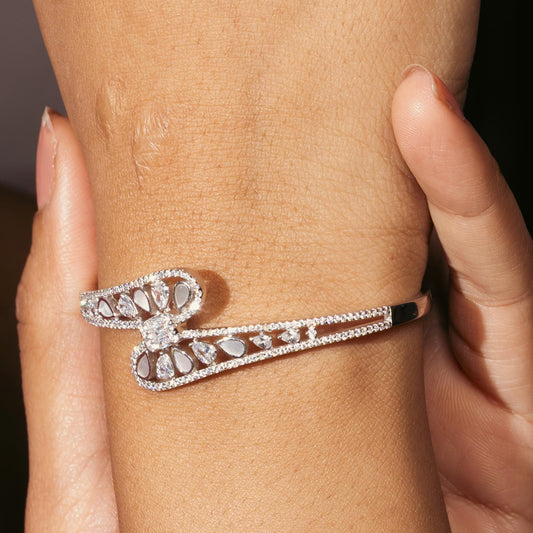 Inlay Clover Silver Linking Bracelet 6.5"+ 1.5" inch