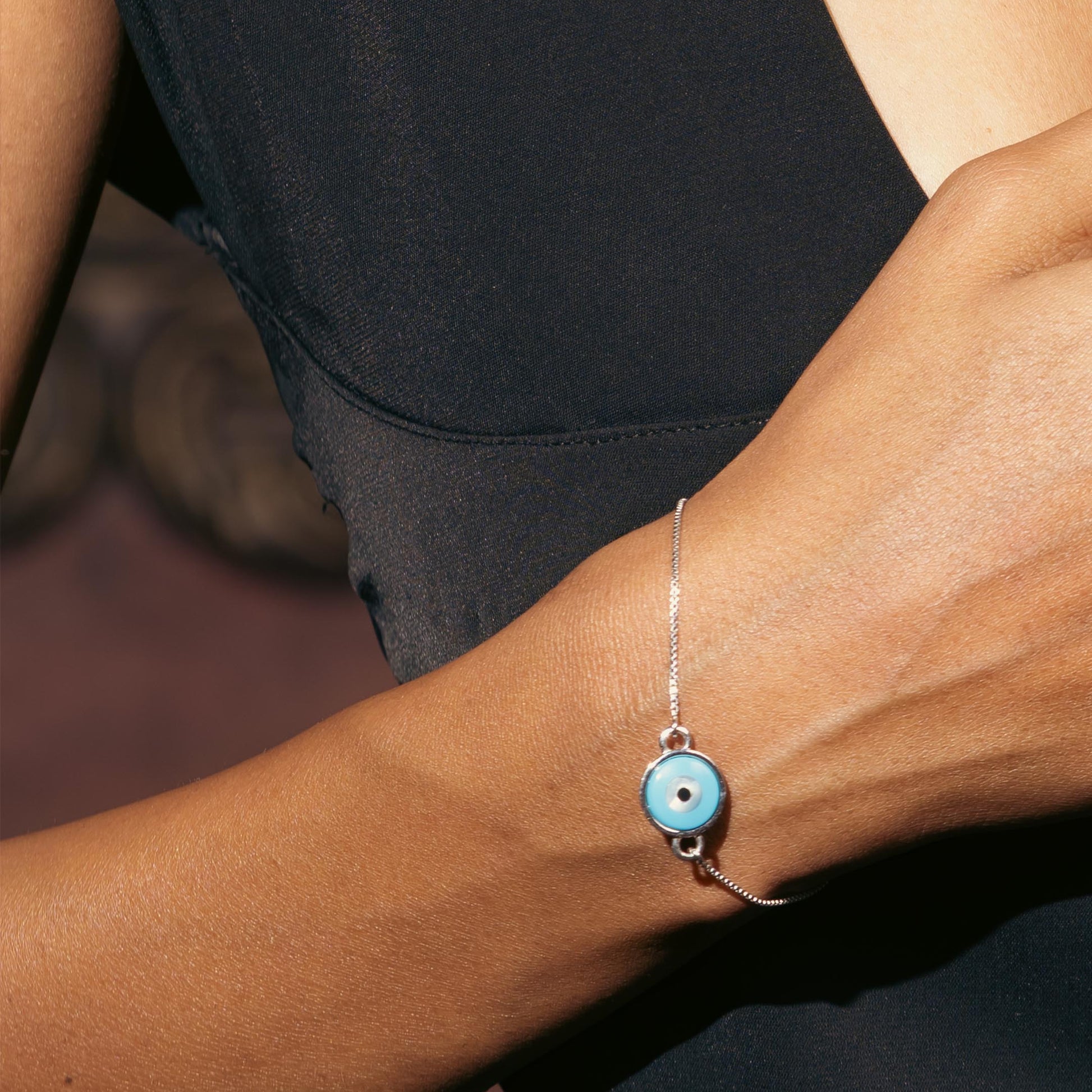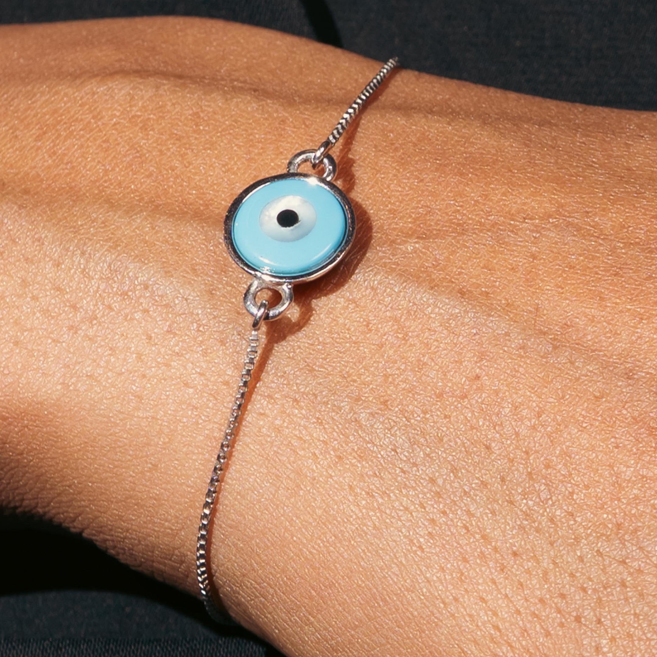 Evil Eye Adjustable Silver Bracelet