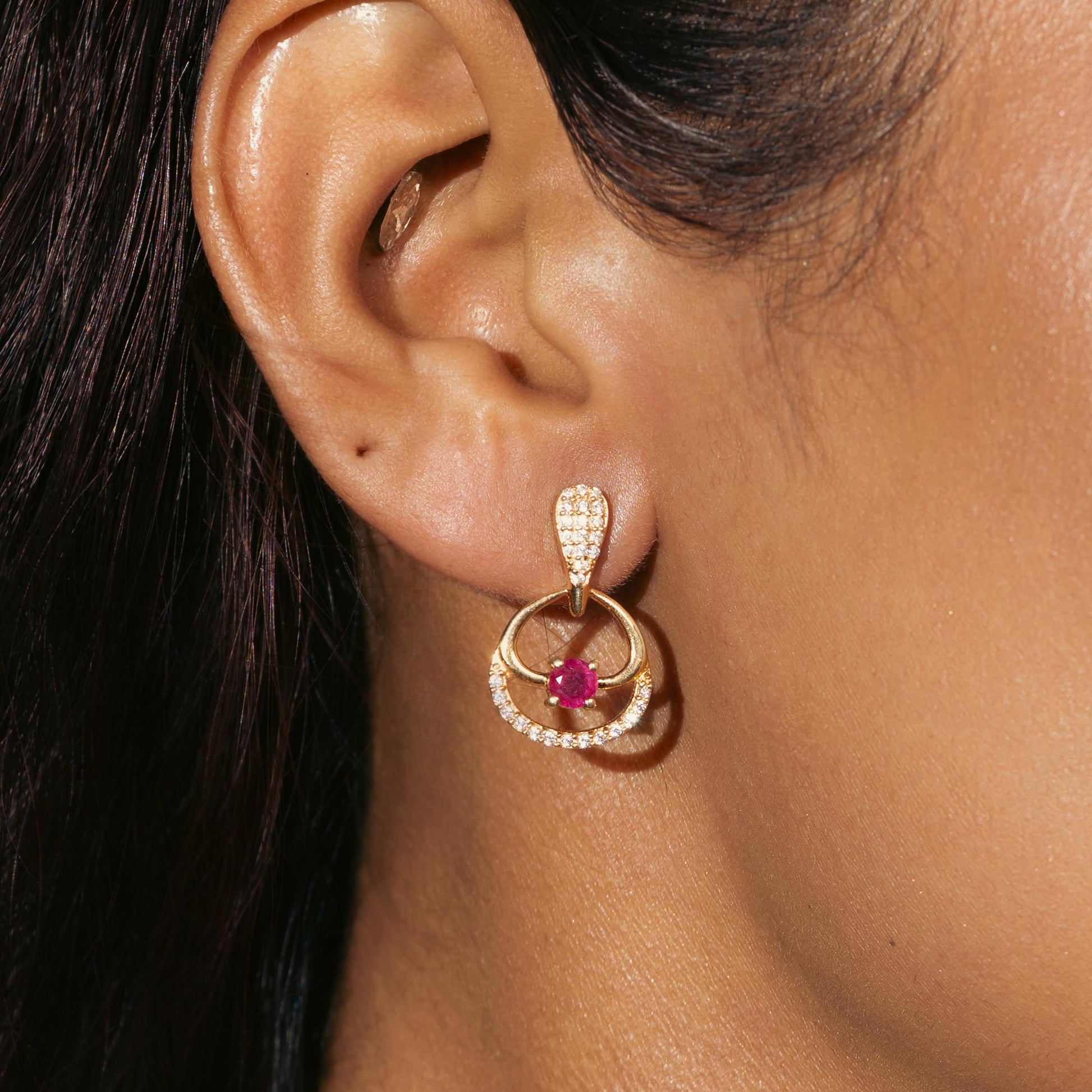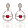 925 Sterling Silver Ruby and Zircon Circle Drop Earrings
