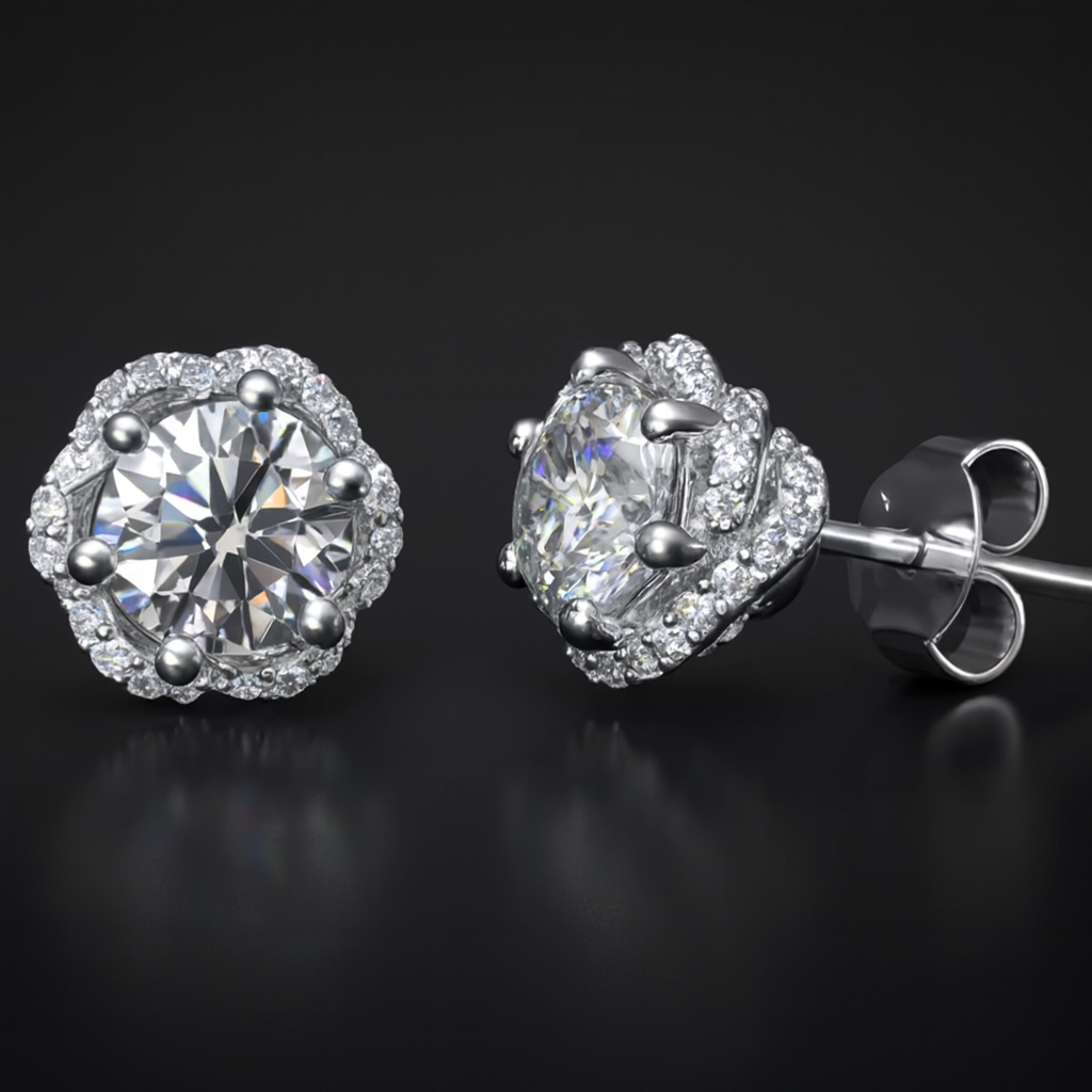 925 Sterling Silver Designer Pave Flower Zircon Earring