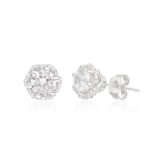 Classic Pave Flower Zircon Earrings – 925 Sterling Silver