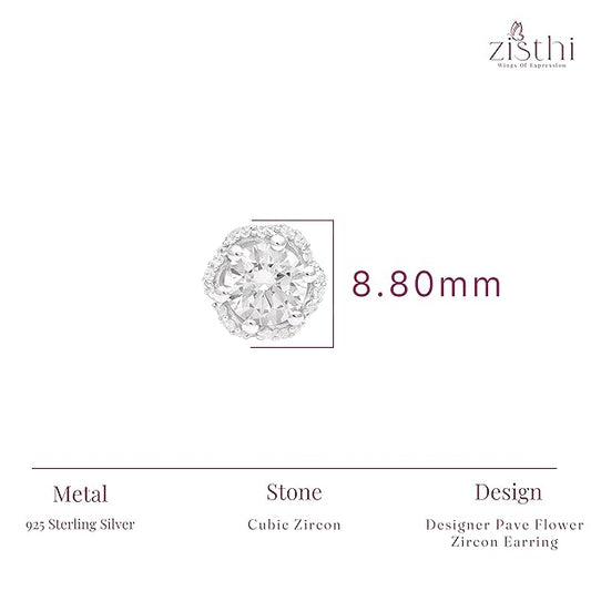 925 Sterling Silver Designer Pave Flower Zircon Earring