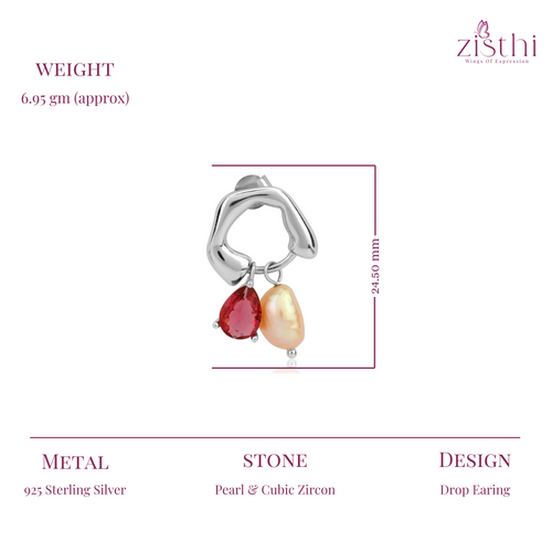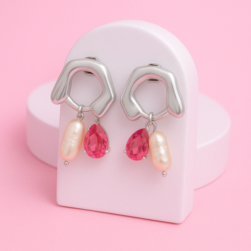These stylish earrings are made from 925 Sterling Silver and feature a beautiful pink stone along with a freshwater pearl drop. The mix of the bold pink stone and the elegant pearl gives these earrings a unique and trendy look, perfect for adding a splash of colour to your outfit.