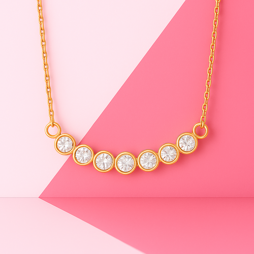 Add a modern yet timeless touch to your look with the Elegant Bubble Style Necklace. Designed with a charming bubble-inspired pattern, this necklace reflects light beautifully and adds subtle sparkle to your neckline. The adjustable 18+3 inch chain offers a comfortable and customisation fit, making it perfect for everyday wear or special occasions. A stylish piece that pairs effortlessly with both western and traditional outfits and makes a lovely gifting option.