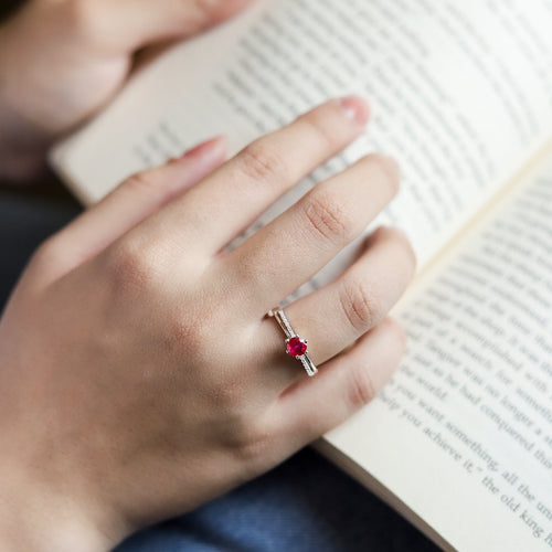 Layered Elegance Red Ruby Adjustable Ring