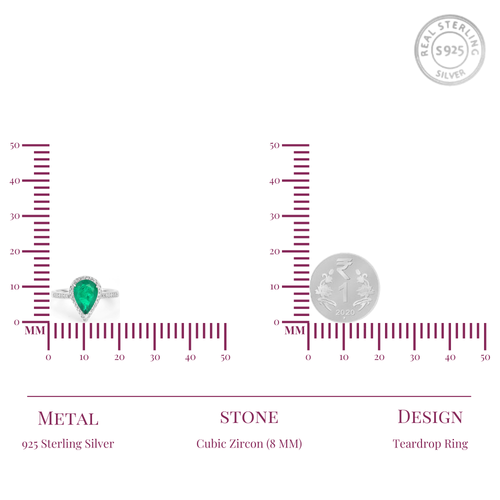 Add a touch of elegance to your everyday style with this Silver Teardrop Emerald Ring. Made from pure 925 sterling silver, it features a beautiful teardrop-shaped emerald green stone that gives a fresh, graceful look.