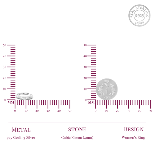 Sleek Solitaire & Pave Set Adjustable Ring In 925 Sterling Silver