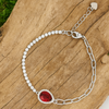 Red Pear Zircon and Paperclip Linking Silver Bracelet 6.5"+1.5" inch