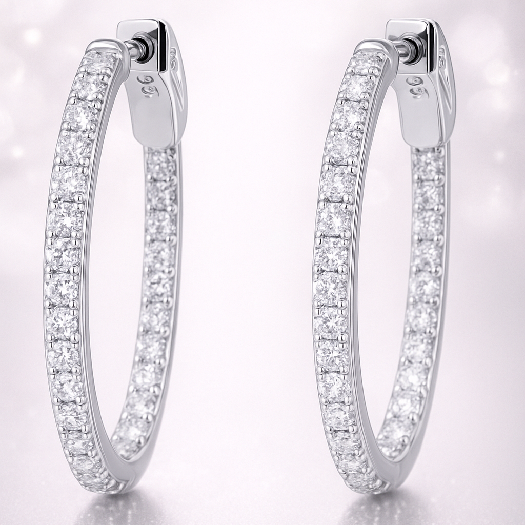 Silver Zircon Sparkling Inout Hoop Earring 20MM