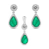 Pear Cut Emerald Halo Earring & Pendant Set