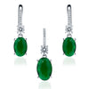 Silver Oval Emerald Pendant and Earring Set