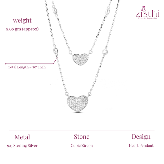 Heart Zircon Silver Layer Necklace 20" Inch
