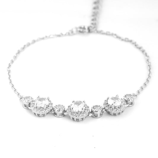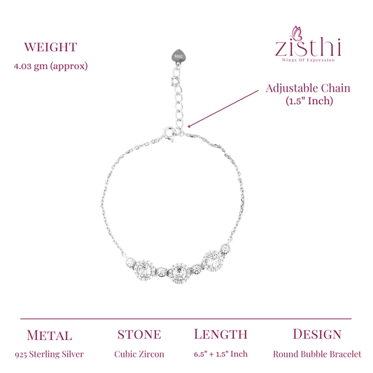 Sparkling Round Halo Zirconia Silver Bracelet 6.5"+1.5 " inch