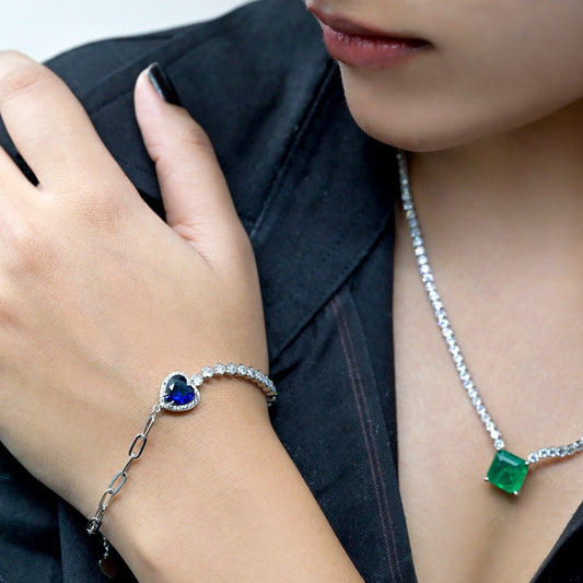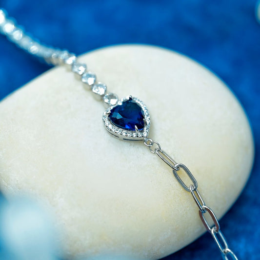 Heart Of The Ocean Silver Bracelet 6.5"+1.5" inch