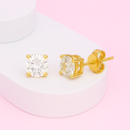 White Simulated Diamond Stud Earrings In 925 Sterling Silver
