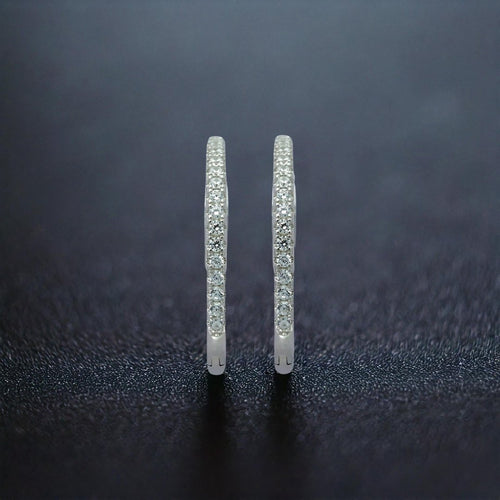 These elegant hoop earrings are crafted from 925 Sterling Silver, adorned with sparkling cubic zircon stones all around the hoop. The sleek and timeless design makes them perfect for adding a touch of glamour to any outfit, whether you're dressing up for an event or adding a little sparkle to your daily look.