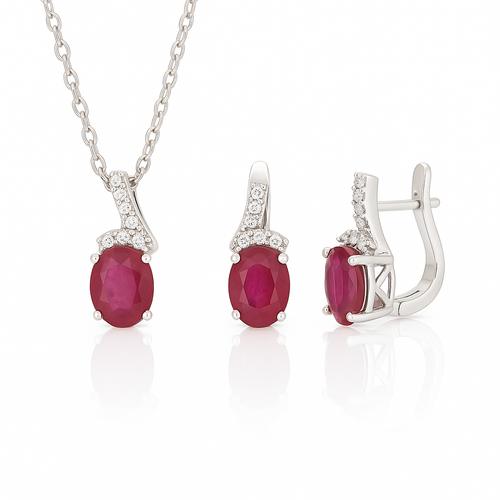 Add a touch of timeless beauty to your collection with this stunning ruby jewellery set. Made with 925 sterling silver and featuring natural rubies, this elegant set includes: