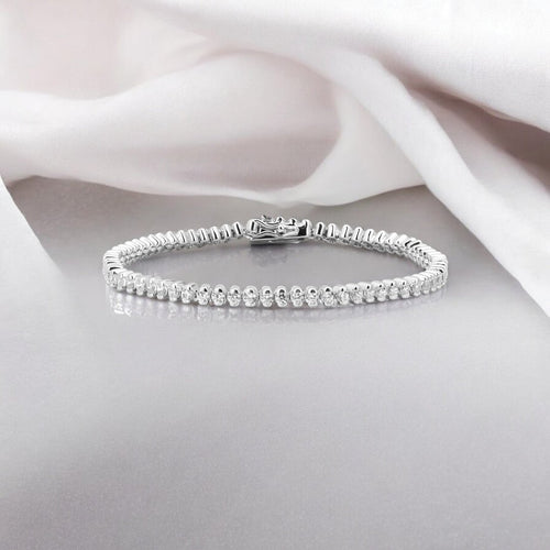 Half Bezel Tennis Silver Bracelet