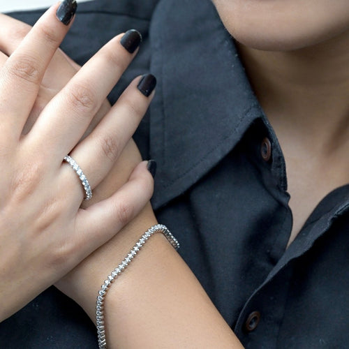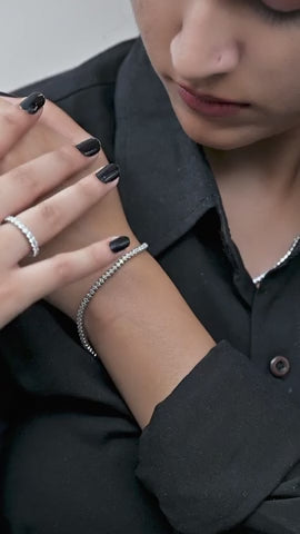 This stunning tennis bracelet is crafted from high-quality 925 Sterling Silver and features sparkling zircon stones set in a half-bezel style. Designed to be elegant yet comfortable, it's perfect for adding a hint of luxury to your everyday look or a touch of glamour to special occasions.