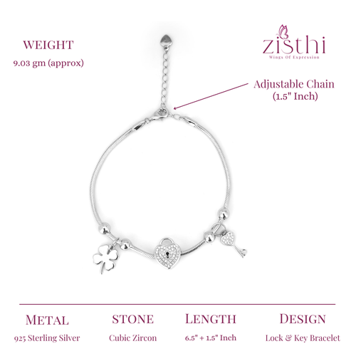 This Love Lock Charm Silver Bracelet is a charming piece perfect for anyone who believes in love and luck. Made with high-quality 925 sterling silver, it features beautiful charms like a four-leaf clover, a heart-shaped lock, and a key, symbolizing love, luck, and togetherness. Its adjustable design makes it easy to fit on any wrist, adding a lovely touch to everyday style or special occasions.