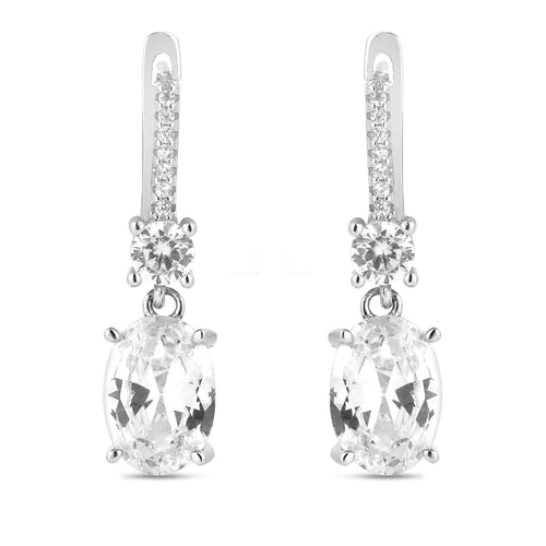 Silver Oval White Zircon Pendant and Earring Set