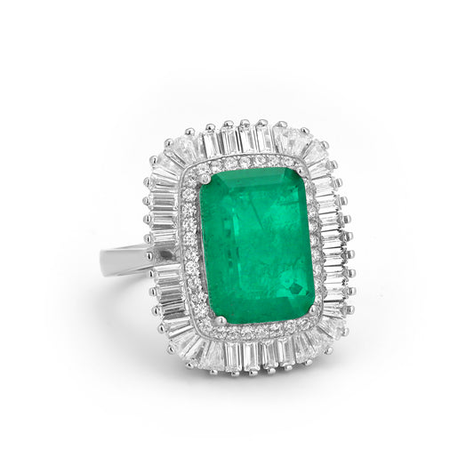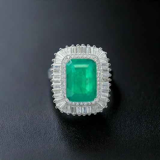 Simulated Diamond Paraiba Tourmaline Double Halo Ring
