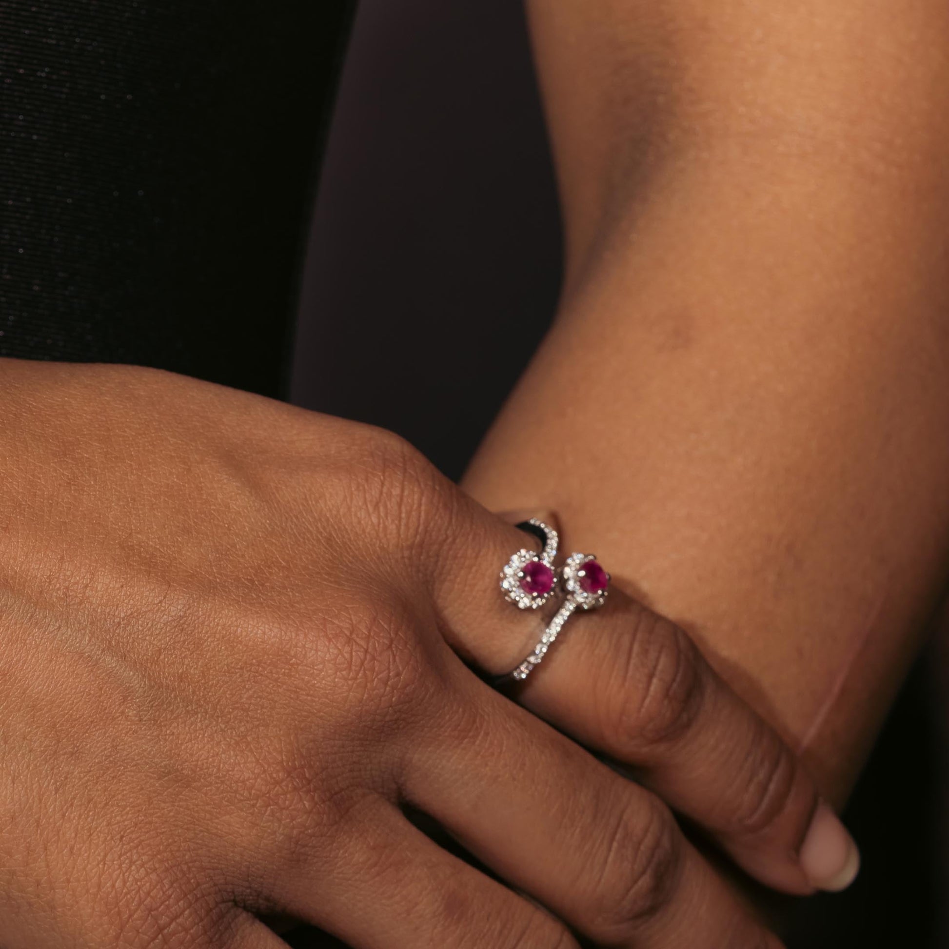 925 Sterling Silver Natural Ruby Bypass Couple Love Ring