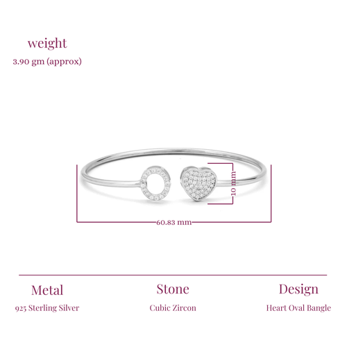 This elegant bangle, crafted from 925 Sterling Silver, features a sparkling zircon heart and oval, adding a touch of charm and elegance to your style. Ideal for both casual and formal occasions, this bangle is lightweight and comfortable for daily wear.