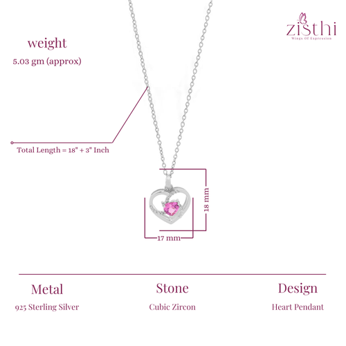 Lightweight and comfortable, it comes with a matching sterling silver chain that pairs effortlessly with any outfit. A beautiful symbol of love and elegance, ideal for gifting or personal wear.