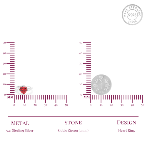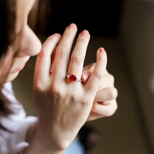 Love Heart Garnet Stone Ring with Adjustable Fit