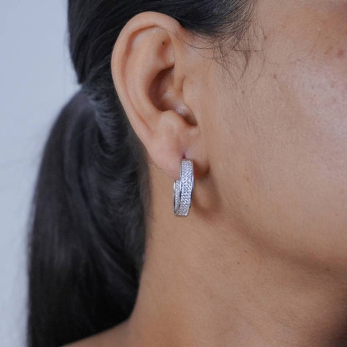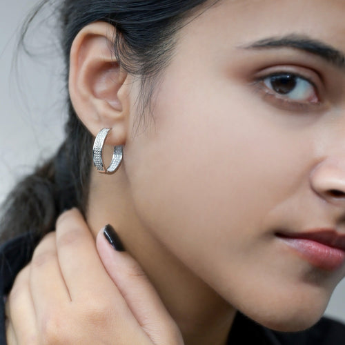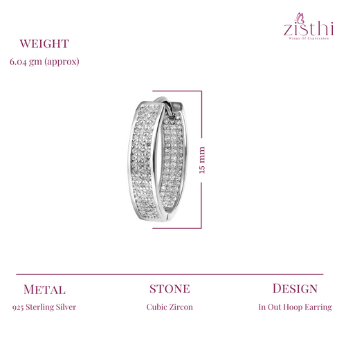 Hoop earrings are crafted from 925 Sterling Silver and feature three rows of dazzling zircon stones, giving them a luxurious diamond-like shine. Their elegant design is perfect for both casual and formal occasions, making them a versatile addition to any jewellery collection.