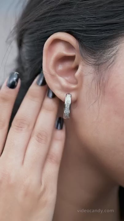 Diamond look 3 Row Zircon Inout Hoop Earring 15MM