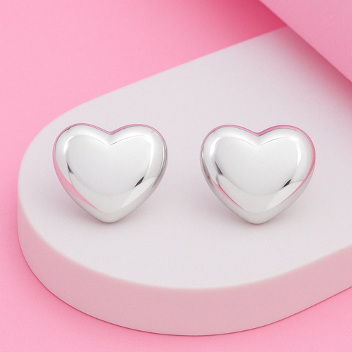 These Silver Big and Bold Heart Stud Earrings are a fun accessory made from sterling silver. Their large heart shape makes a strong statement.