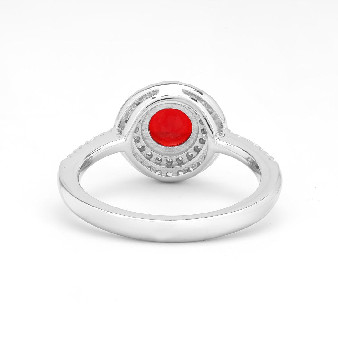 Simulated Diamond Ruby Double Halo Ring