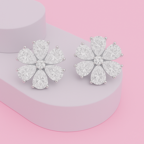These sparkling floral stud earrings feature a delicate flower-inspired design that adds a touch of elegance and charm to any look. Crafted with fine detailing, they offer a graceful sparkle that makes them perfect for everyday wear as well as special occasions.