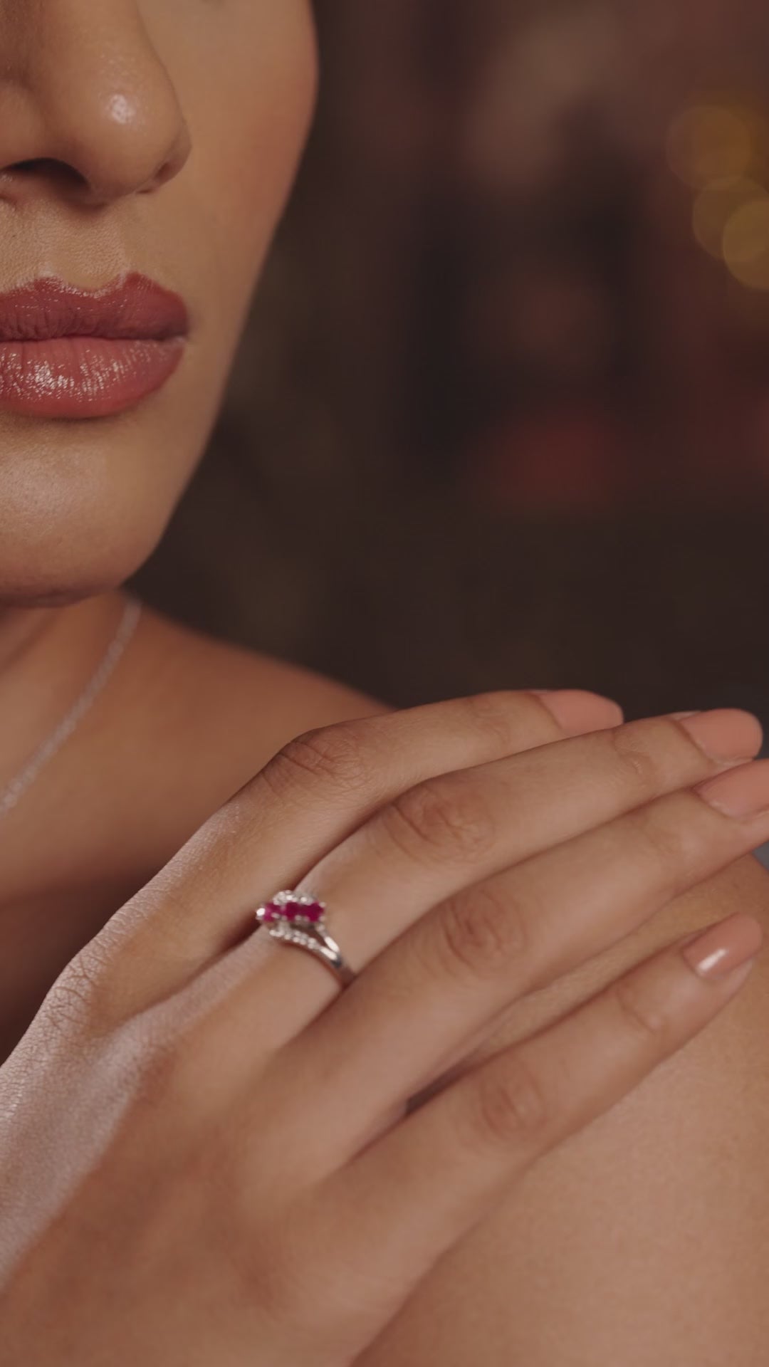925 Sterling Silver Natural Ruby Trio Modern Bypass Ring